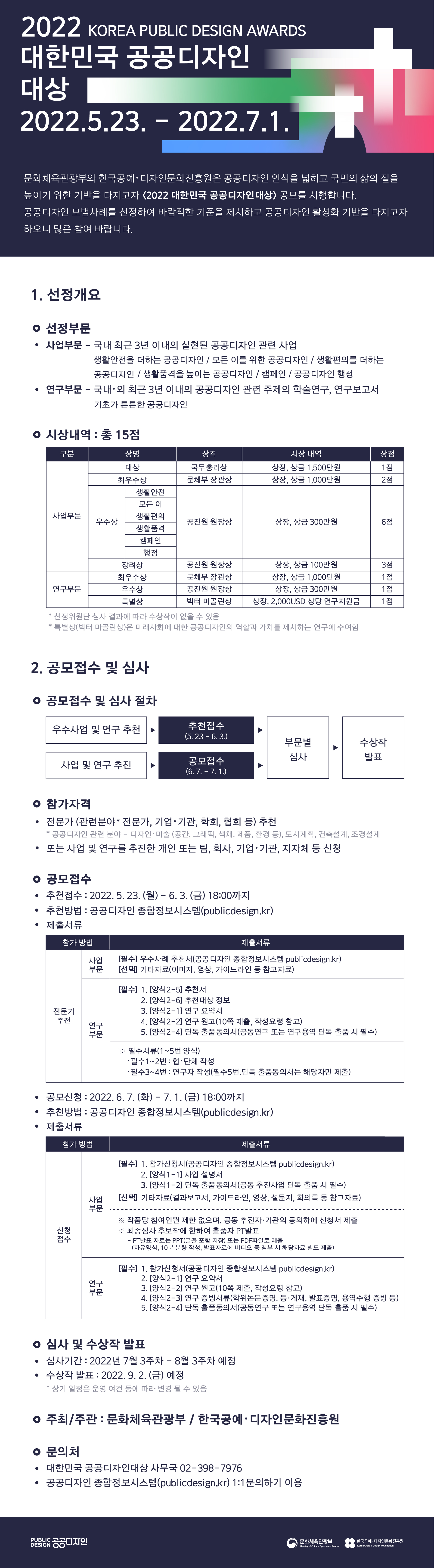 - [한국공예디자인문화진흥원] <2022 대한민국 공공디자인대상> 공모전 개최 안내