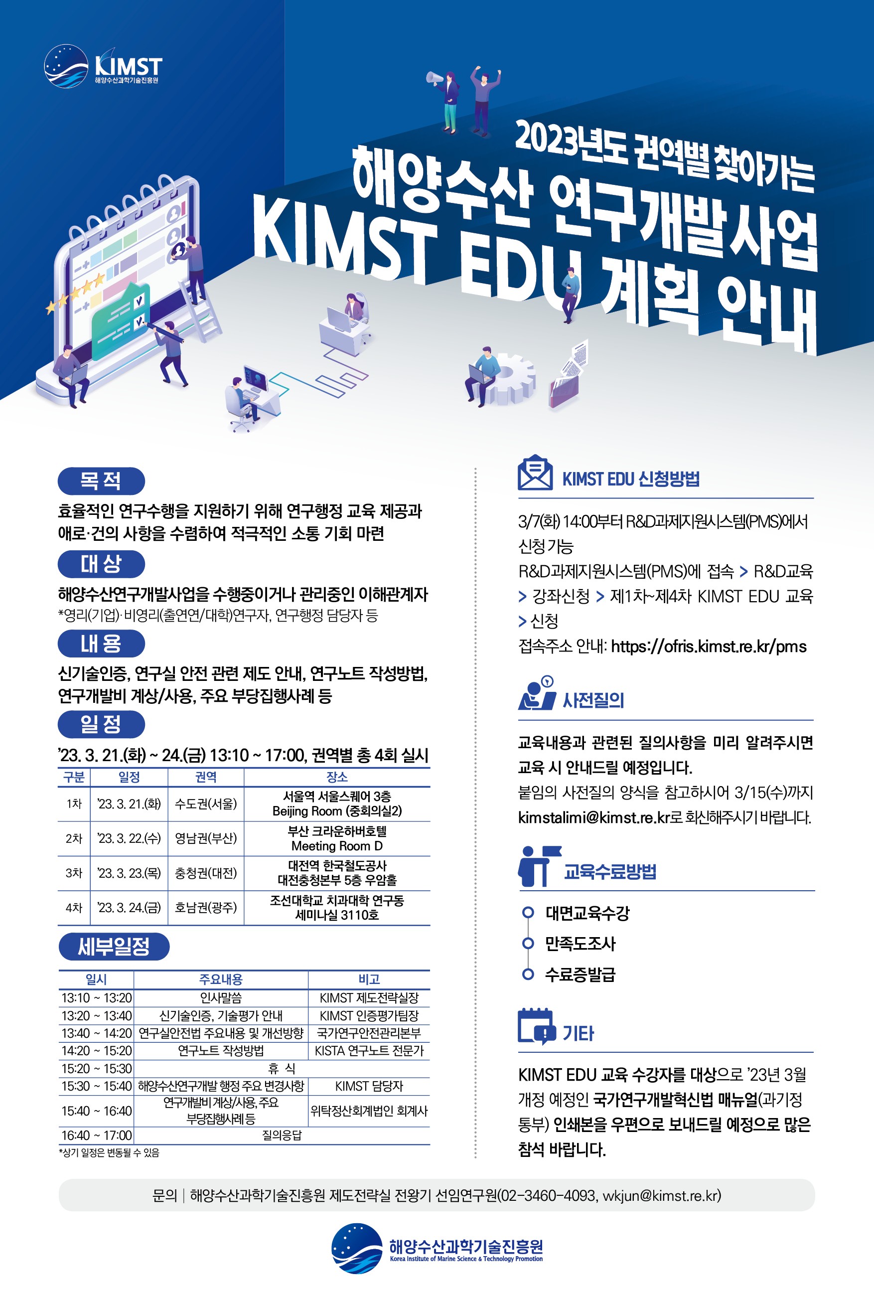 - [일반공지] (해양수산과학기술진흥원)2023년도 해양수산연구개발사업 권역별 연구자 수요기반 교육프로그램(KIMST EDU) 참석 요청