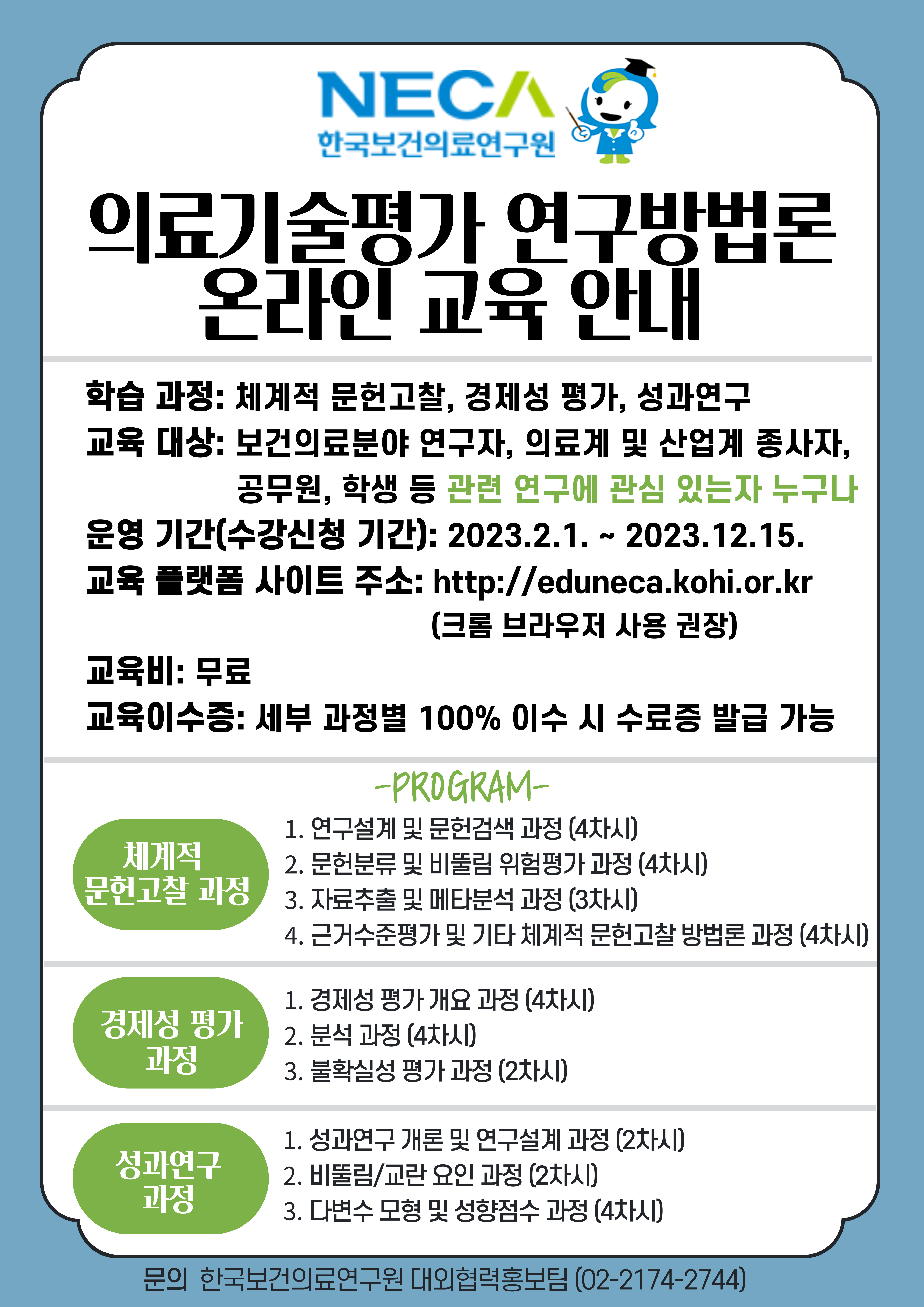- [일반공지] (한국보건의료연구원)2023년 의료기술평가 연구방법론 온라인 교육과정