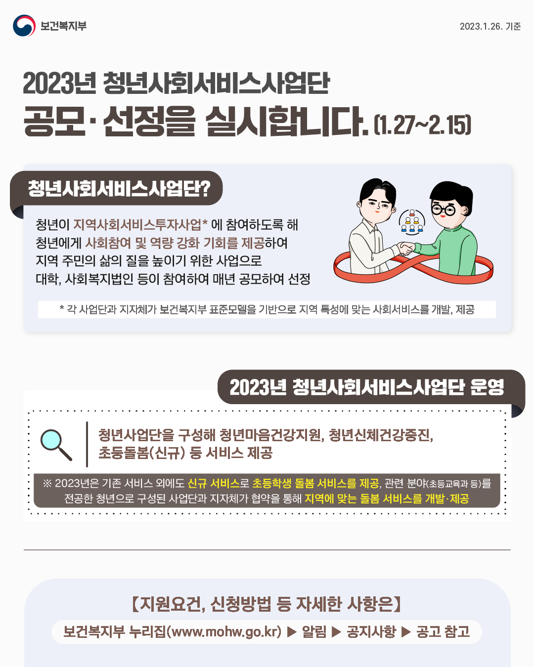 - [일반공지] (교육부)2023년 청년사회서비스사업단 선정 공모 안내