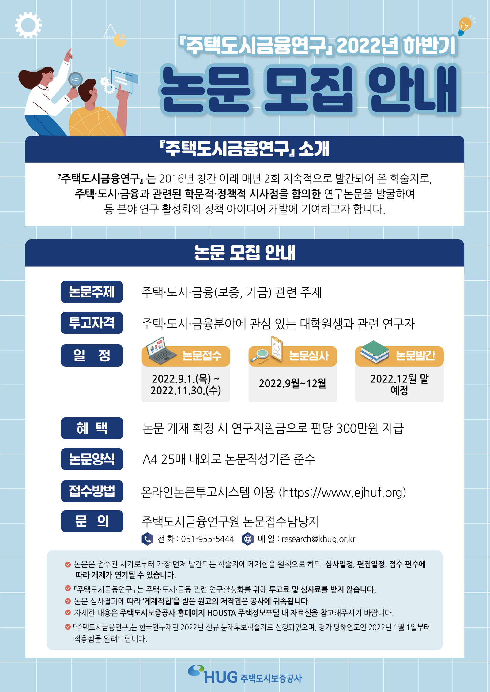 - [일반공지] [주택도시보증공사] 학술지『주택도시금융연구』제7권 제2호 논문 모집 안내