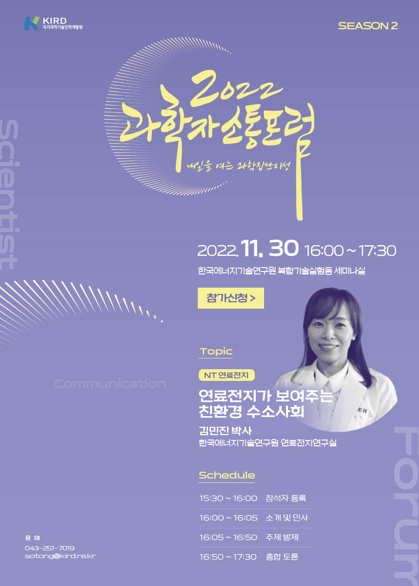 - [일반공지] [국가과학기술인력개발원] KIRD 「2022년 제8회 과학자 소통 포럼」 참여 안내