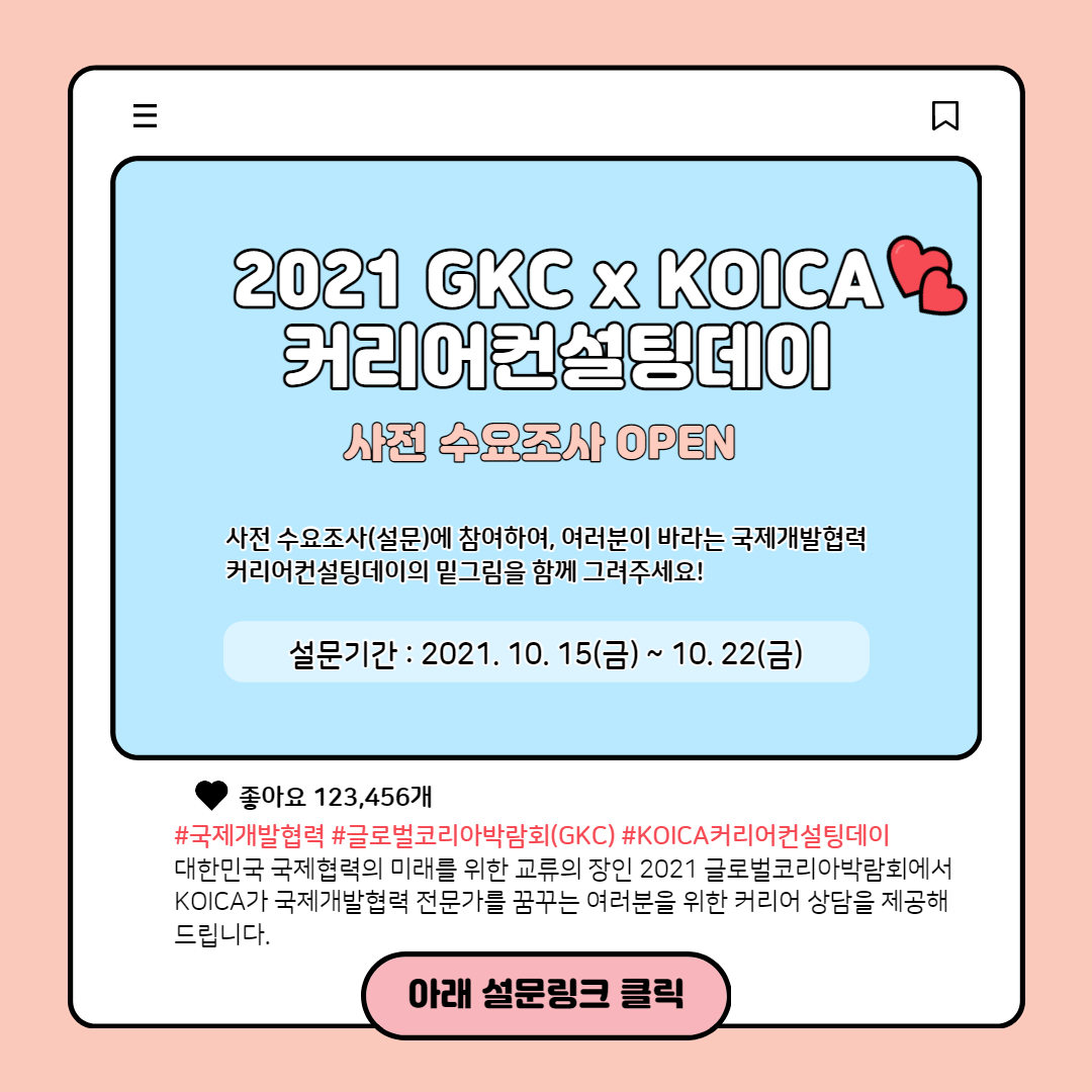 - [KOICA 사회적가치혁신팀] 2021년 GKC x 커리어컨설팅데이 사전 수요조사 안내