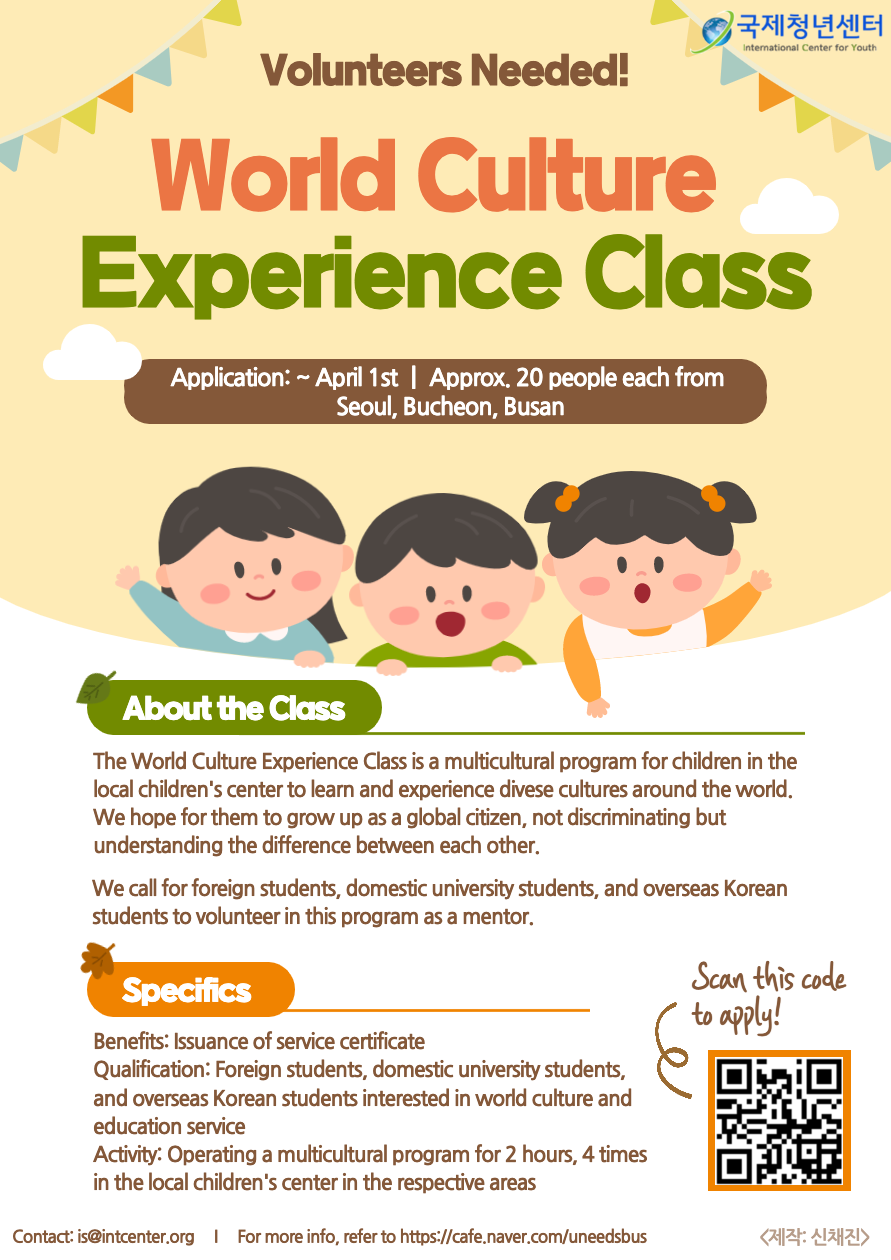 - [생활] 2021 세계문화체험교실 외국인 유학생 봉사자 모집