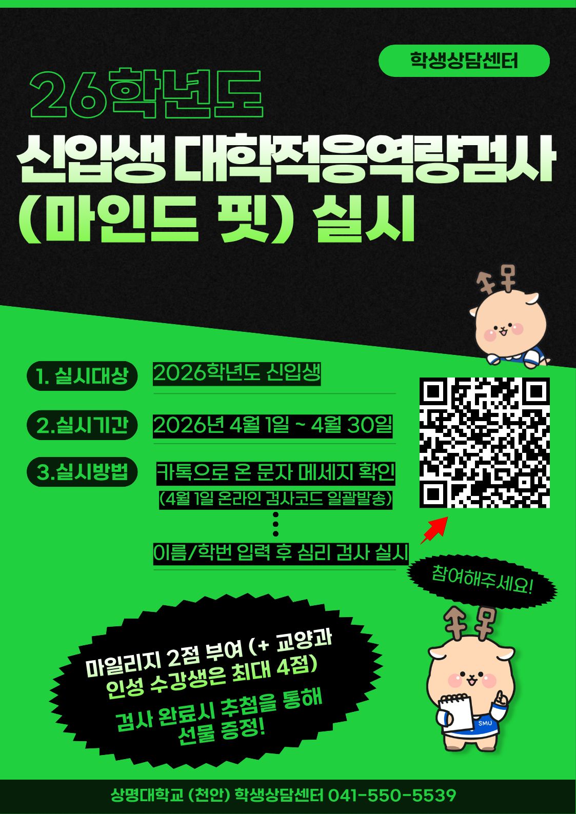 천안 [학생생활] [학생상담센터] 2026학년도 신입생 적응역량검사(마인드핏) 안내